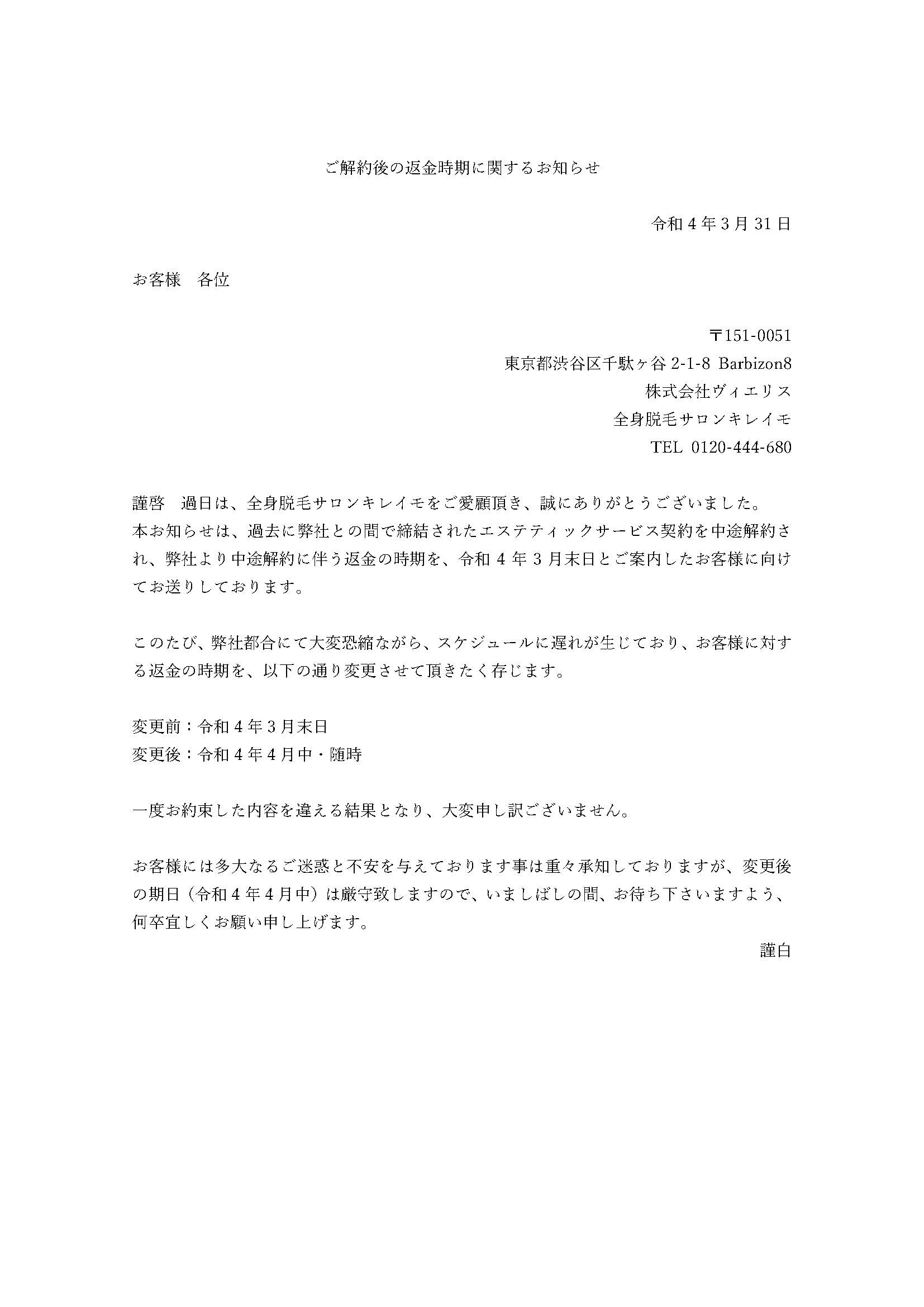 解約、返金申請
