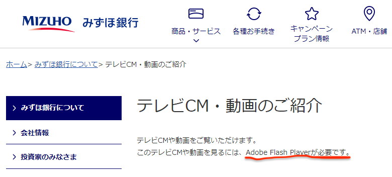 その上現在は「Adobe Flash Player」をサイト上で