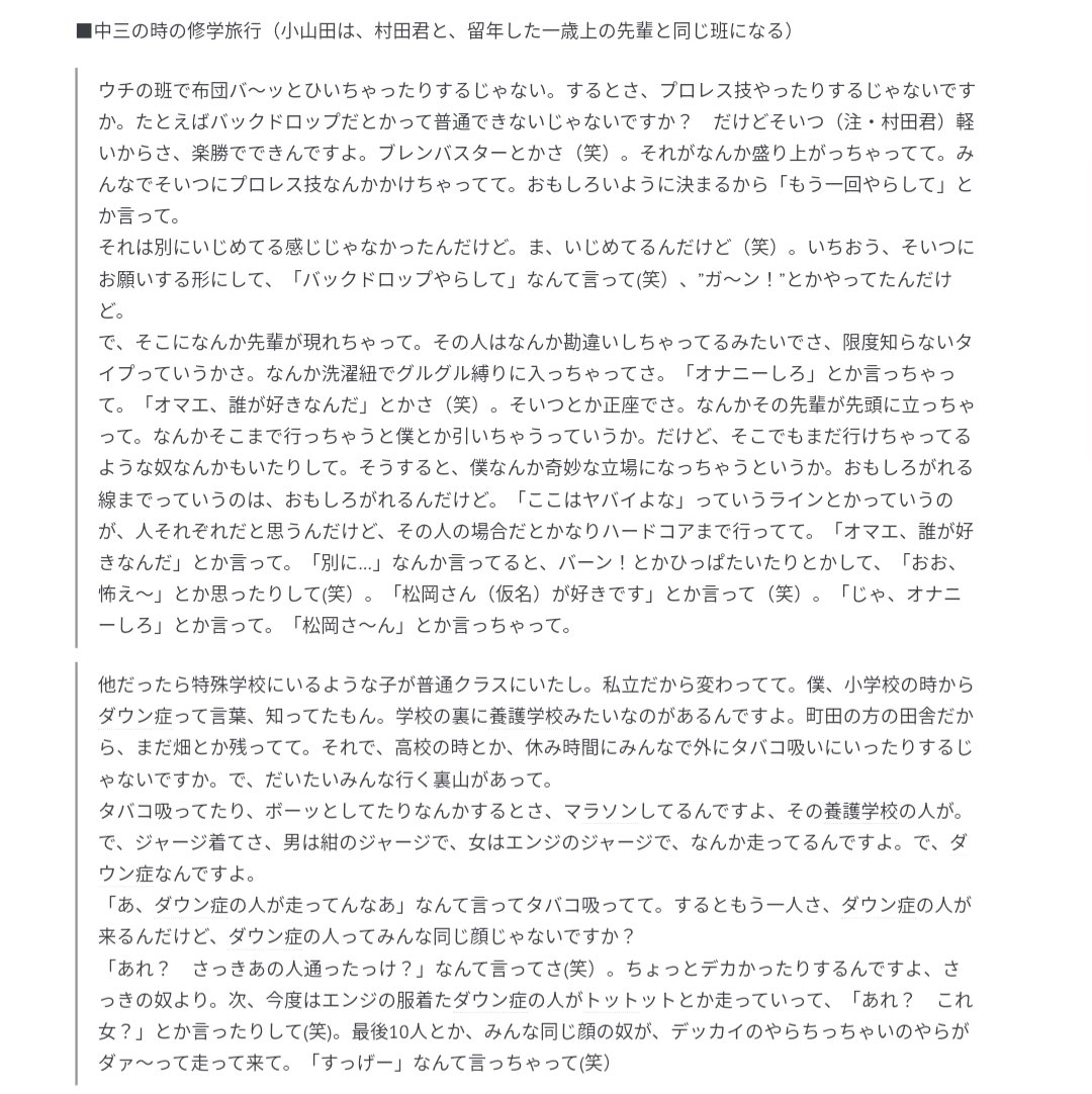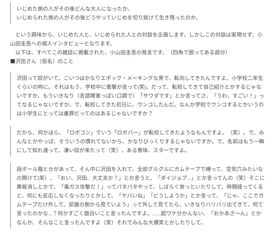 イジメ武勇伝を語っていた小山田。