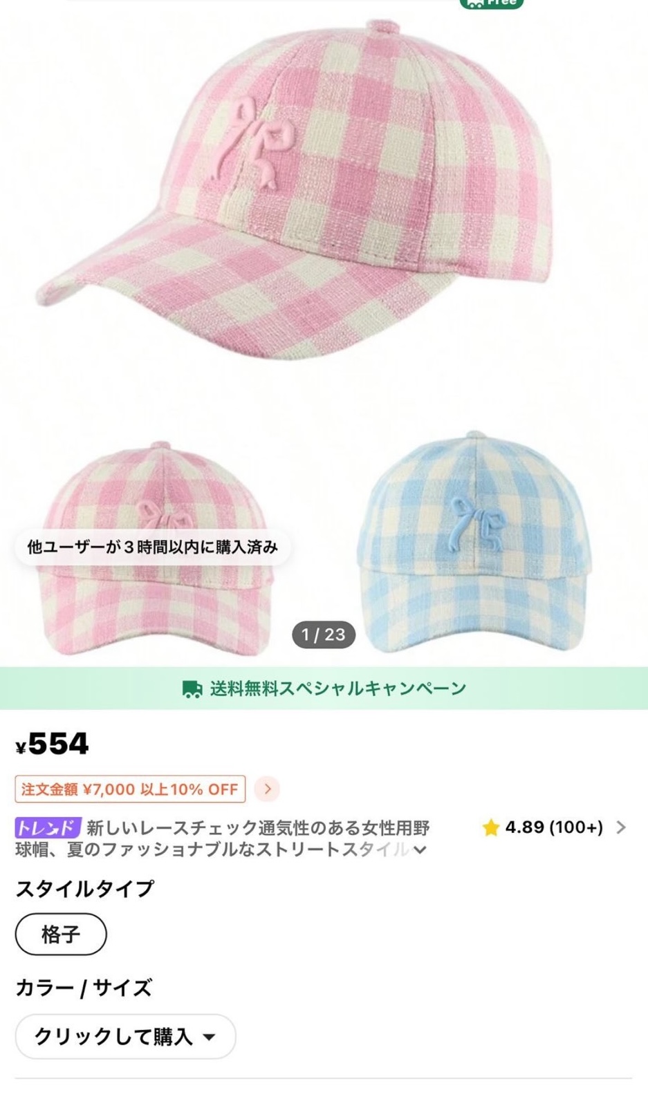 SHEINで554円のキャップ