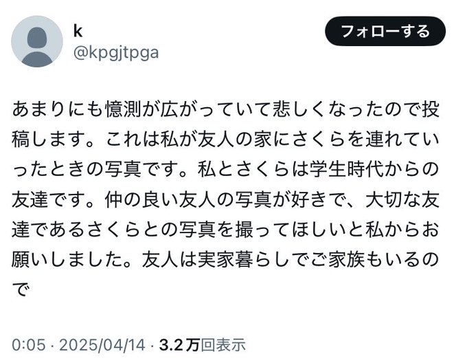 突如「小田さくらの友達」アカウントが登場し
