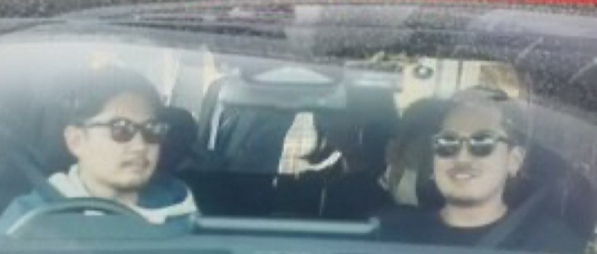 車内でで不敵な笑み。
