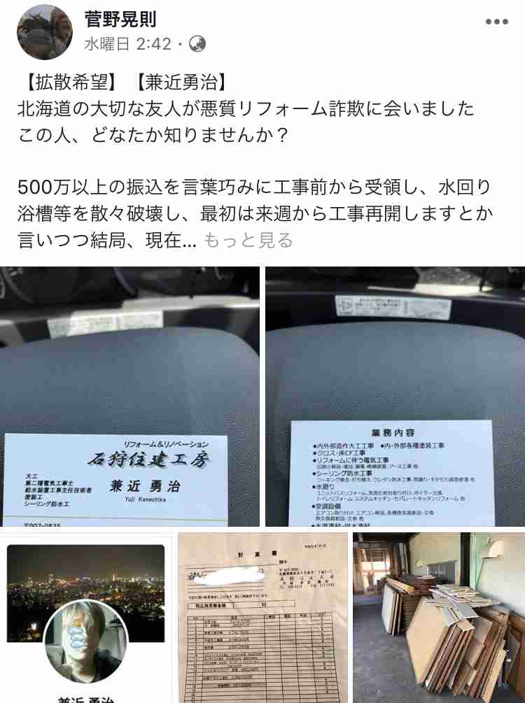 北海道の大切な友人が悪質リフォーム詐欺に会いました この人、どなたか知りませんか?